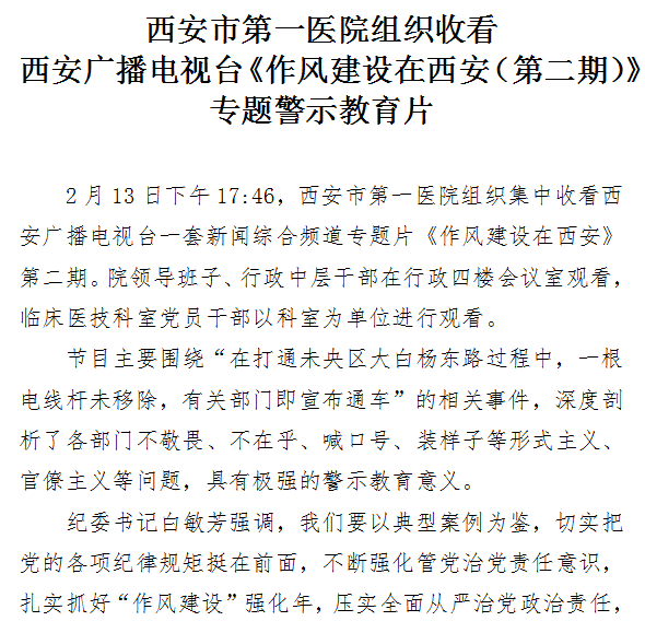 成人导航 组织收看西安广播电视台《作风建设在西安(第二期)》专题警示教育片