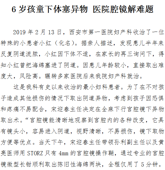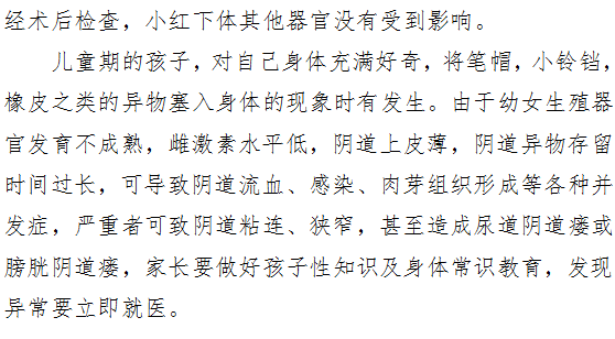 6岁孩童下体塞异物 成人导航 腔镜解难题