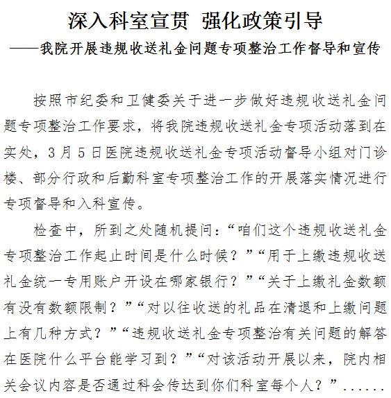 深入科室宣贯 强化政策引导 ——成人导航开展违规收送礼金问题专项整治工作督导和宣传