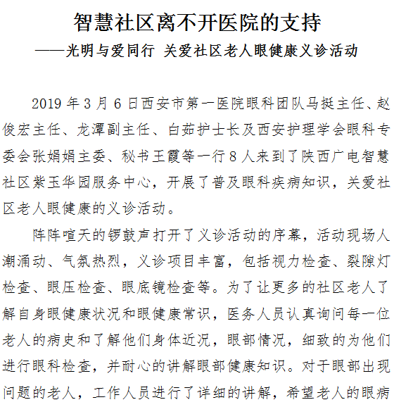 智慧社区离不开成人导航 的支持——光明与爱同行 关爱社区老人眼健康义诊活动