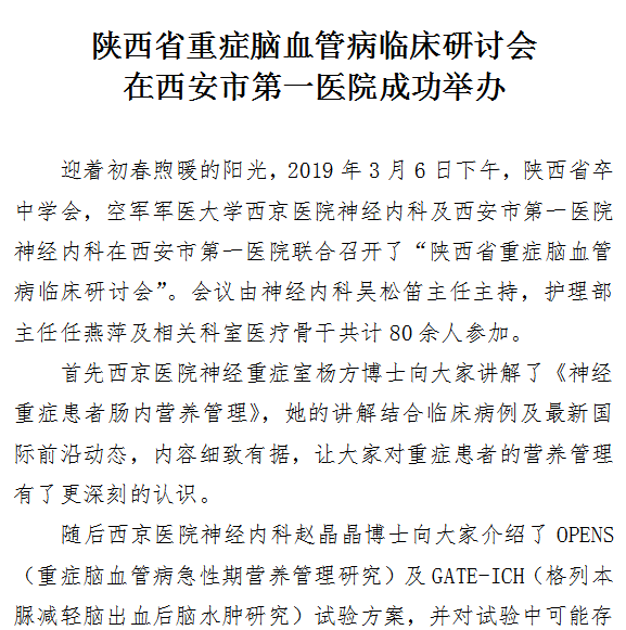 陕西省重症脑血管病临床研讨会在成人导航 成功举办