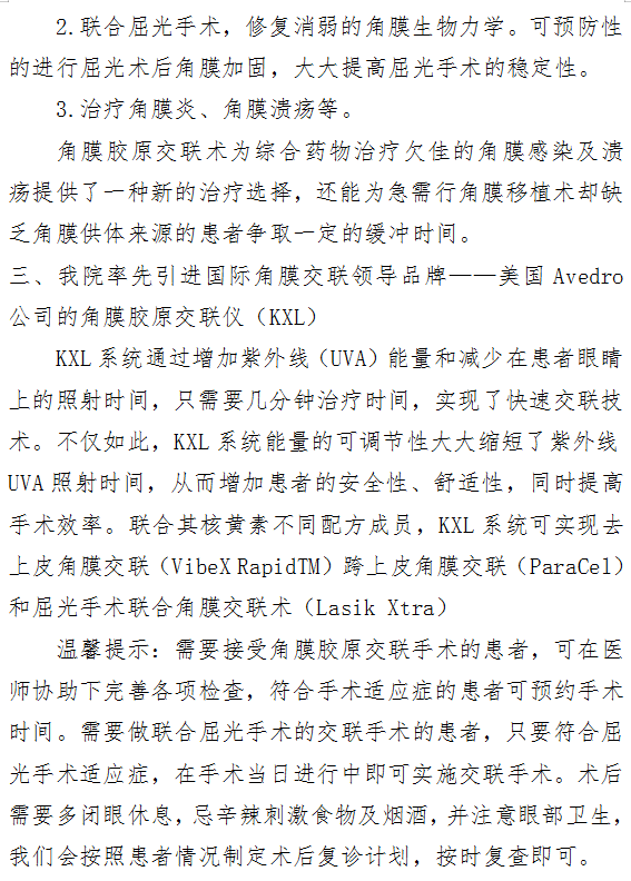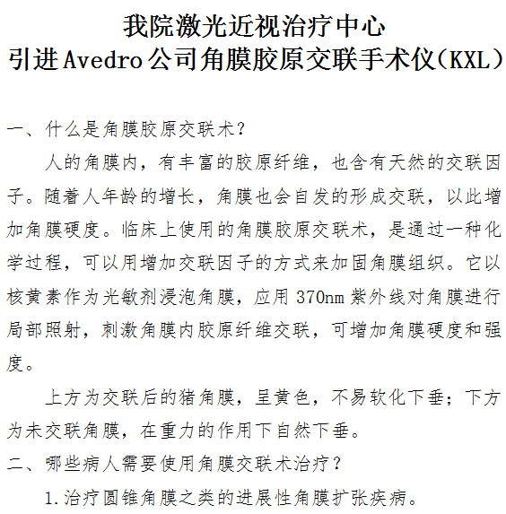成人导航激光近视治疗中心引进Avedro公司角膜胶原交联手术仪(KXL)