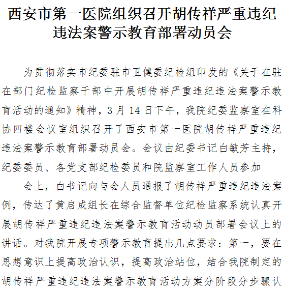 成人导航 组织召开胡传祥严重违纪违法案警示教育部署动员会