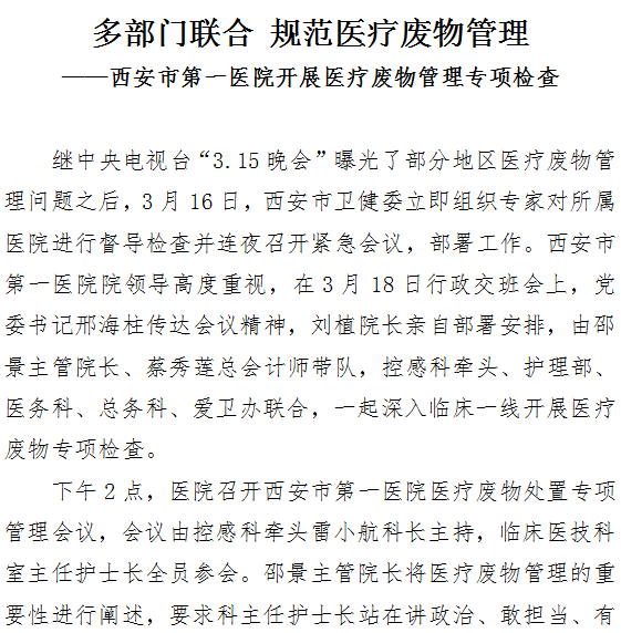 多部门联合 规范医疗废物管理——成人导航 开展医疗废物管理专项检查