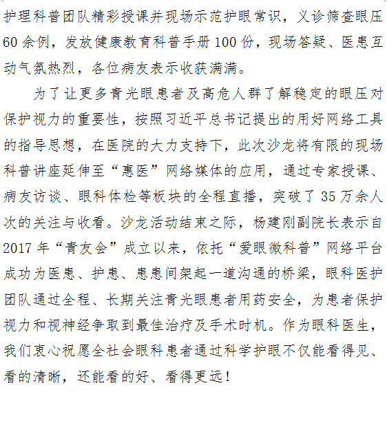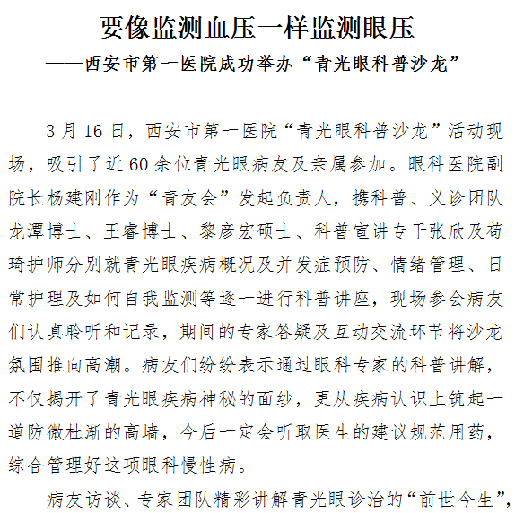 要像监测血压一样监测眼压——成人导航 成功举办“青光眼科普沙龙”