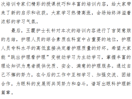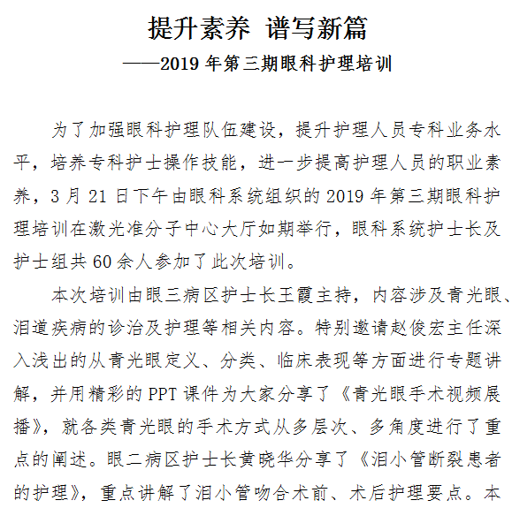 提升素养 谱写新篇——2019年第三期眼科护理培训