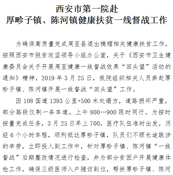 西安市第一院赴厚畛子镇、陈河镇健康扶贫一线督战工作