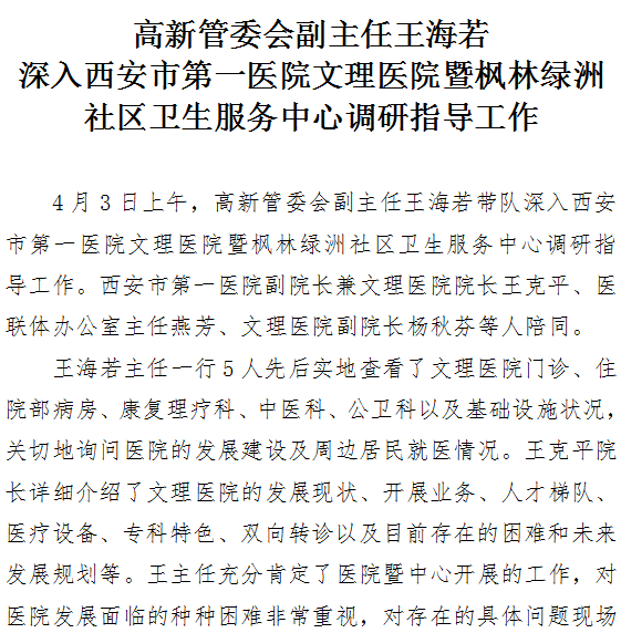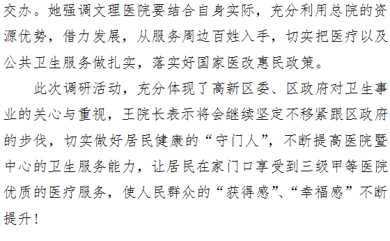 高新管委会副主任王海若深入市一院文理成人导航 暨枫林绿洲社区卫生服务中心调研指导工作