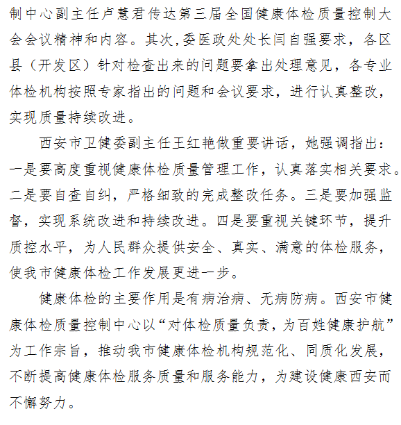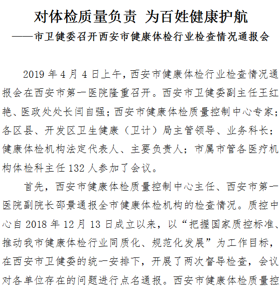 对体检质量负责 为百姓健康护航——市卫健委召开西安市健康体检行业检查情况通报会