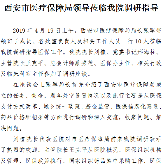西安市医疗保障局领导莅临成人导航调研指导