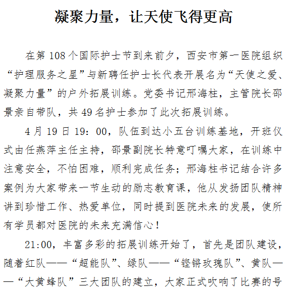凝聚力量,让天使飞得更高