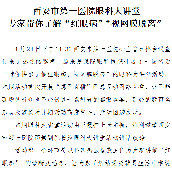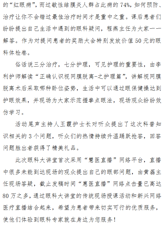 成人导航 眼科大讲堂专家带你了解“红眼病”“视网膜脱离”