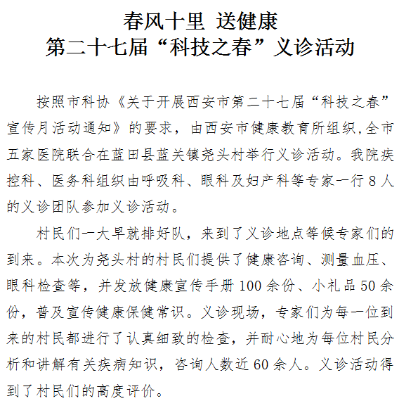 春风十里 送健康——第二十七届“科技之春”义诊活动