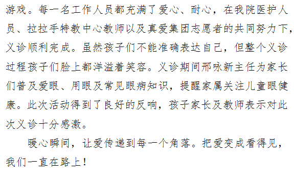 “全国助残日”成人导航小儿眼科医护团队为特殊儿童义诊