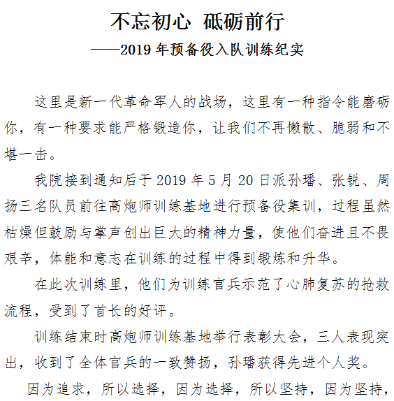 不忘初心 砥砺前行——2019年预备役入队训练纪实