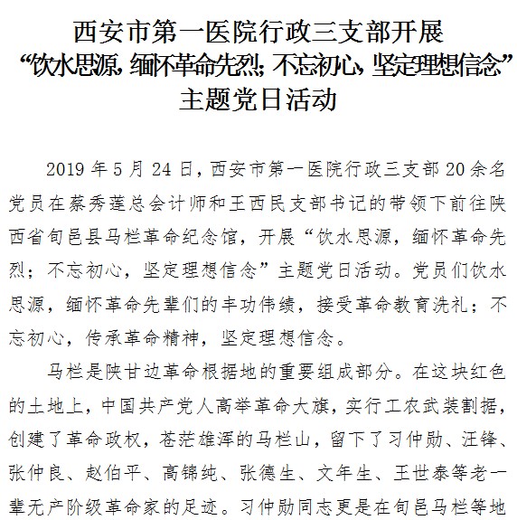行政三支部开展“饮水思源,缅怀革命先烈;不忘初心,坚定理想信念” 主题党日活动