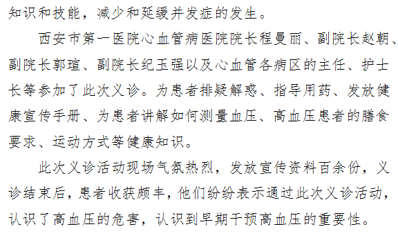 西北大学附属第一成人导航 (成人导航 心血管病成人导航 )举办高血压日义诊活动