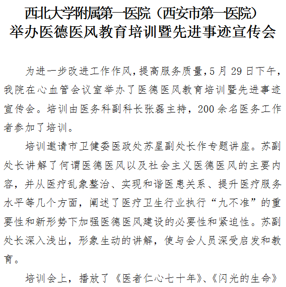 西北大学附属第一成人导航 (成人导航 )举办医德医风教育培训暨先进事迹宣传会