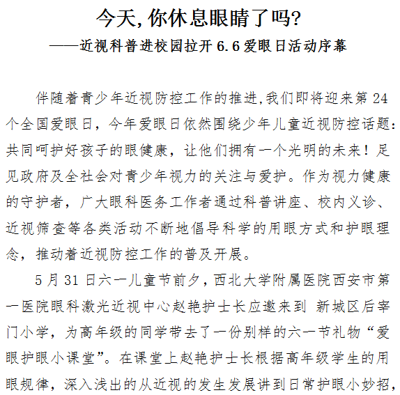 今天,你休息眼睛了吗——近视科普进校园拉开6.6爱眼日活动序幕