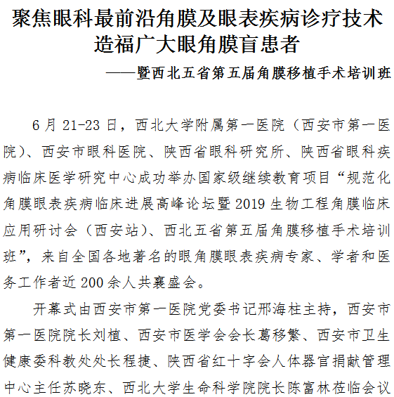 聚焦眼科最前沿角膜及眼表疾病诊疗技术——暨西北五省第五届角膜移植手术培训班