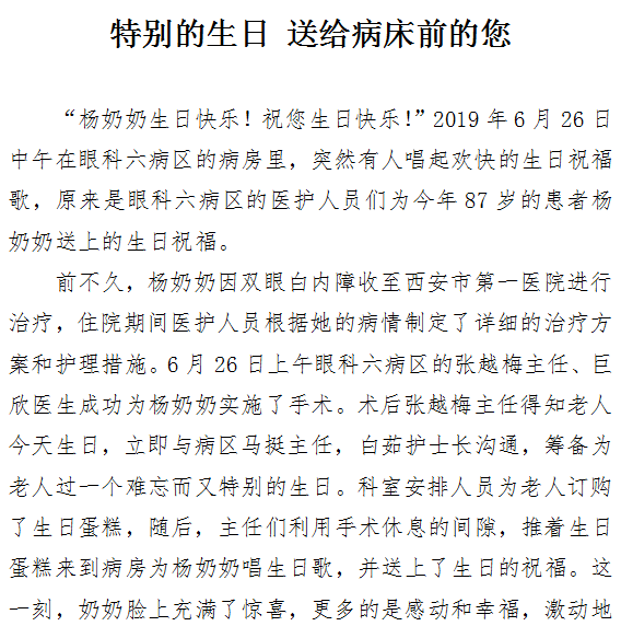 特别的生日 送给病床前的您