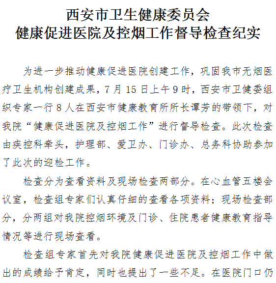 西安市卫生健康委员会 健康促进成人导航 及控烟工作督导检查纪实