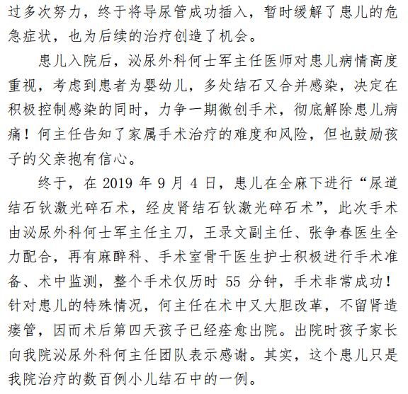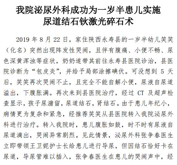 成人导航泌尿外科成功为一岁半患儿实施 尿道结石钬激光碎石术