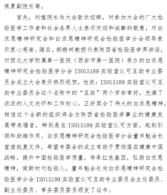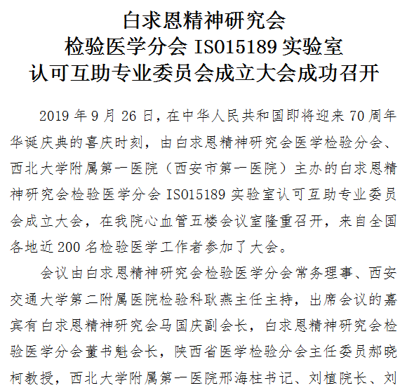白求恩精神研究会 检验医学分会ISO15189实验室 认可互助专业委员会成立大会成功召开