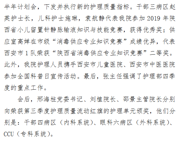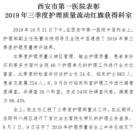 成人导航 表彰 2019年三季度护理质量流动红旗获得科室