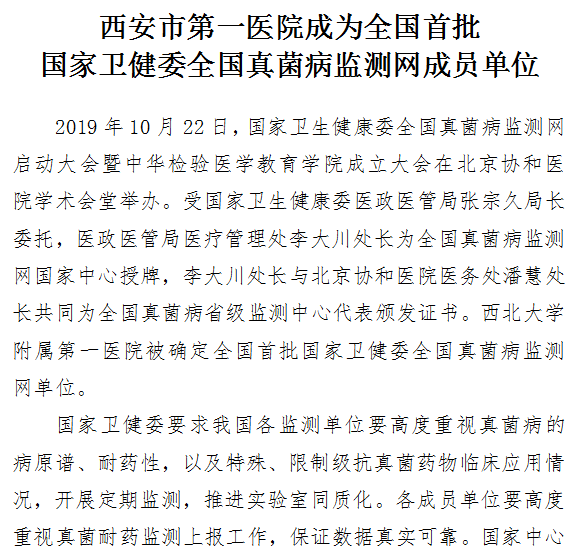 成人导航 成为全国首批 国家卫健委全国真菌病监测网成员单位