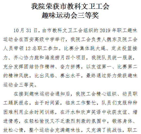 成人导航 荣获市教科文卫工会趣味运动会三等奖