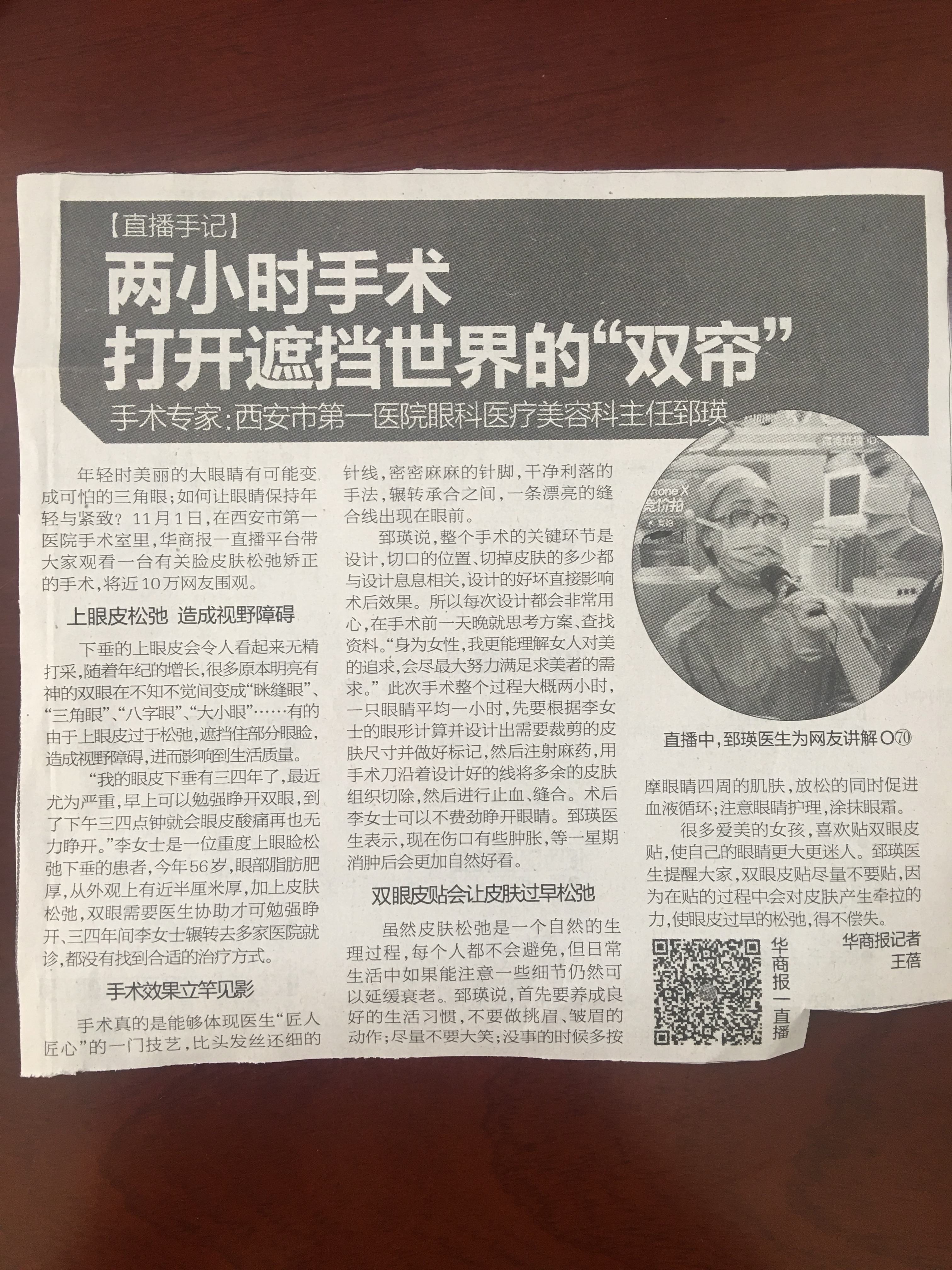 2017.11.4《华商报》直播手记:两小时手术打开遮挡世界的“双帘”