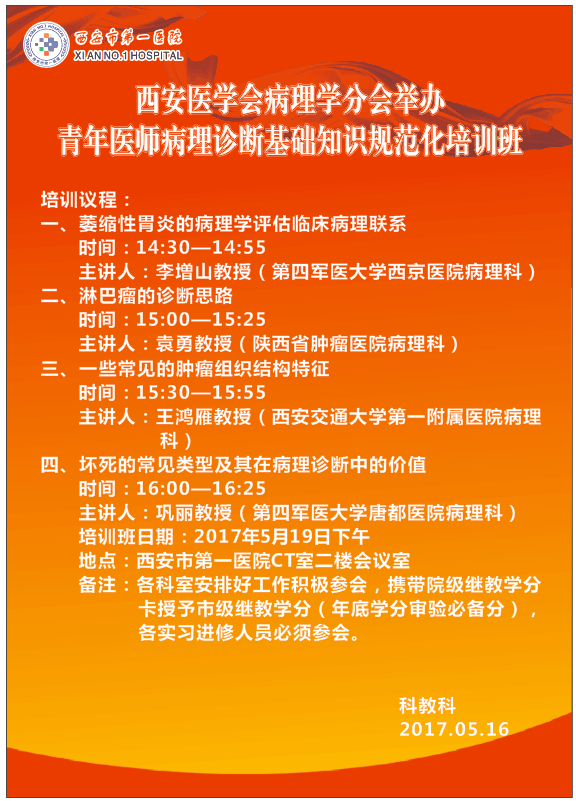 西安病理学会青年医师病理诊断基础知识规范化培训班(通知)