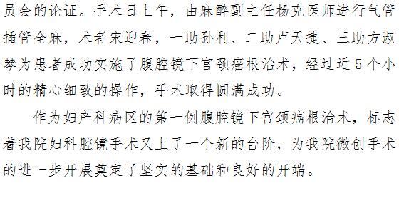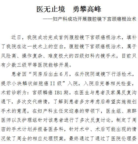 医无止境 勇攀高峰 ——妇产科成功开展腹腔镜下宫颈癌根治术