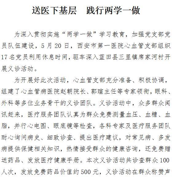送医下基层 践行两学一做