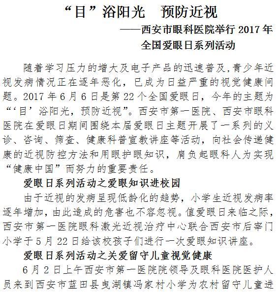 西安市眼科成人导航 2017年全国爱眼日系列活动总结