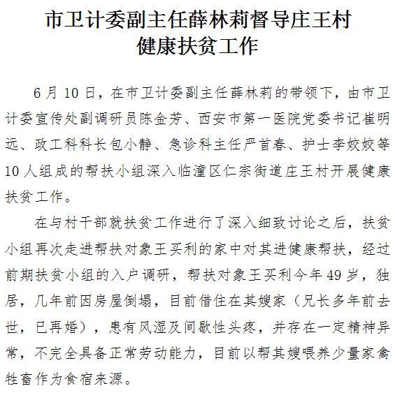 市卫计委副主任薛林莉督导庄王村健康扶贫工作