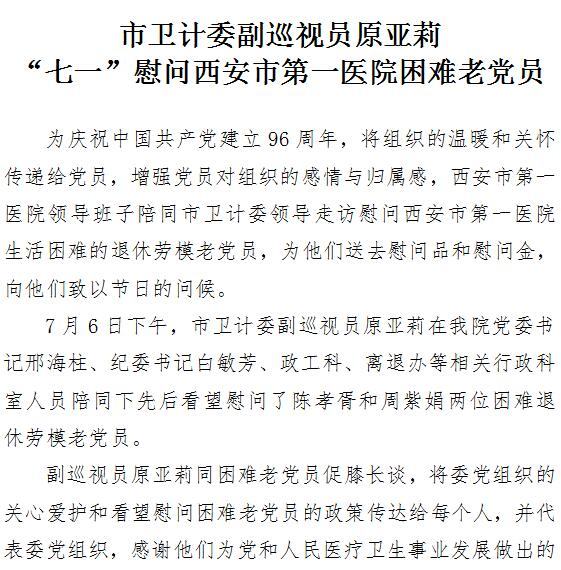 市卫计委副巡视员原亚莉“七一”慰问成人导航 困难老党员