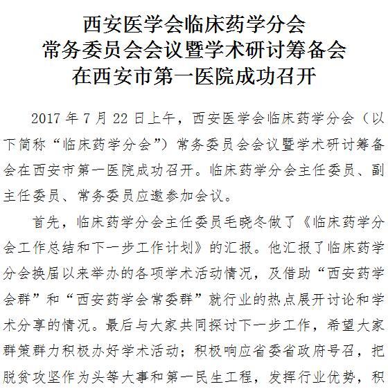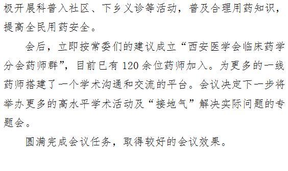 西安医学会临床药学分会常务委员会会议暨学术研讨筹备会在成人导航 成功召开