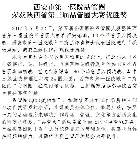 成人导航 品管圈荣获陕西省第三届品管圈大赛优胜奖