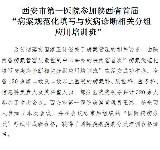 成人导航 参加陕西省首届 “病案规范化填写与疾病诊断相关分组应用培训班”