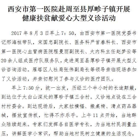 成人导航 赴周至县厚畛子镇开展健康扶贫献爱心大型义诊活动