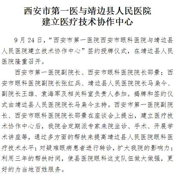 西安市第一医与靖边县人民成人导航 建立医疗技术协作中心