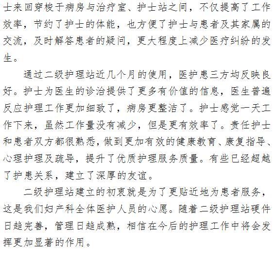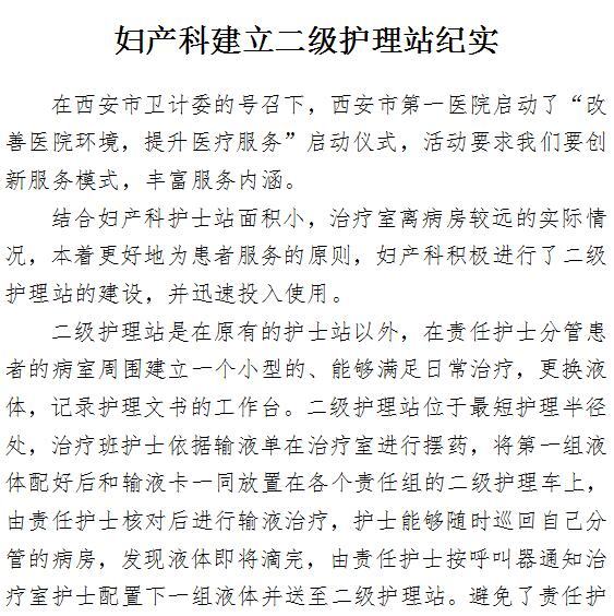 妇产科建立二级护理站纪实