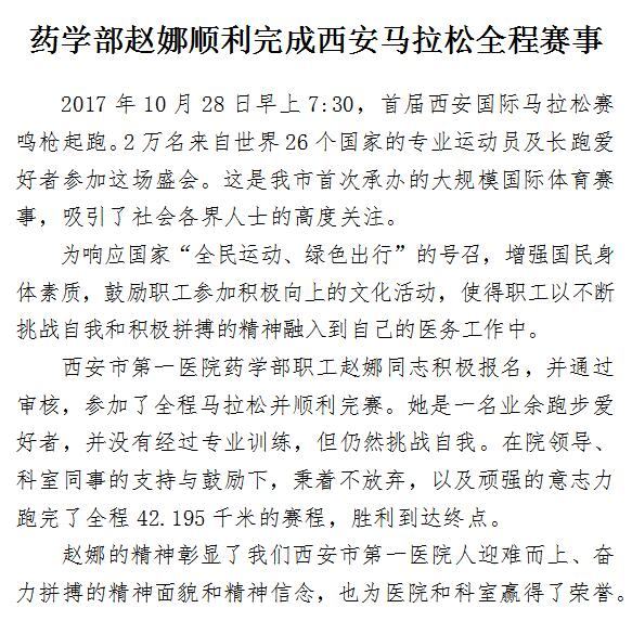 药学部赵娜顺利完成西安马拉松全程赛事
