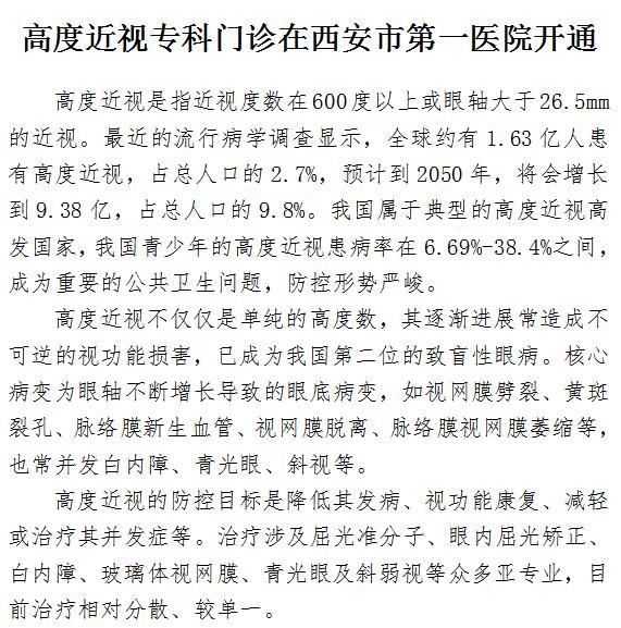 高度近视专科门诊在成人导航 开通