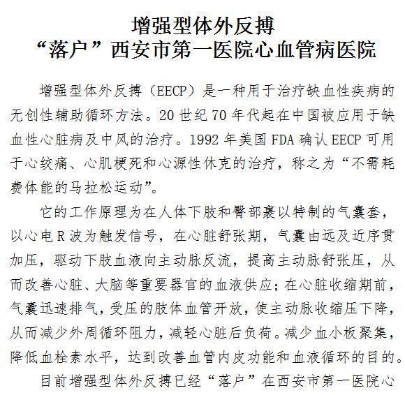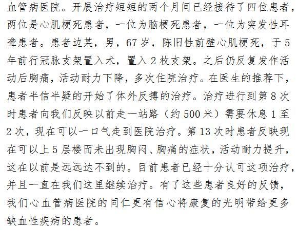 增强型体外反搏“落户”成人导航 心血管病成人导航