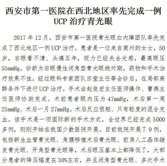 成人导航 在西北地区率先完成一例UCP治疗青光眼