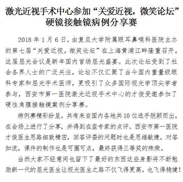 激光近视手术中心参加“关爱近视,微笑论坛”硬镜接触镜病例分享赛