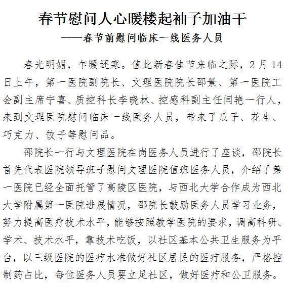 春节慰问人心暖楼起袖子加油干 ——春节前慰问临床一线医务人员